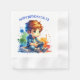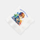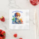 Birthday party napkins. Cute little anime boy playing video games with a blue, orange and green paint splatter background done in an ai watercolor style illustration.