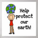 A stick figure boy holding the earth in his hands and text that reads "Help protect our earth!" on environmental awareness T-shirts, hoodies, mugs, stickers, bags, and more!