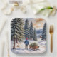 Boy Pulling a Sled With Christmas Evergreen Boughs Paper Plate