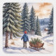 Boy Pulling a Sled With Christmas Evergreen Boughs Square Sticker