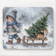 Boy Pulling an Old-fashioned Sled With Tree Mouse Mat