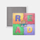 READ Colourful Art Magnet features our colourful art with our signature textures of yellow, red, green and blue with the letters READ in contrasting colours and a boy reading in the centre digitally painted by Traci Van Wagoner. This fun pro book poster is perfect for kids, librarians, bibliophiles, teachers, book lovers, readers, educators, and anyone who loves to read and loves books. Buy our READ Poster and make a visit to your local library to fill your life with books and reading.