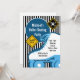 This cute boy's roller skating birthday party invitation features a a big blue and white roller skate.