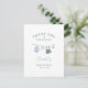 Our beautiful thank you postcard features a delightful watercolor illustration of tiny baby boy clothes hanging on a clothesline. Each piece is lovingly painted with soft pastel colours, creating a heartwarming and elegant design that perfectly sets the tone for celebrating the arrival of a precious little boy.