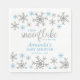 These Boy Snowflake Baby Shower Napkins are perfect for your winter wonderland themed baby shower! All blue text and snowflakes are changeable in colour if you click to edit with the design tool.