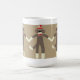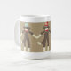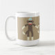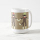 This mug features a trio of happy sock monkey friends on a beige background. This fun and cute item will cheer up your day.