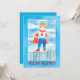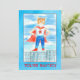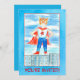 A fun invitation to gather the kids for a birthday party featuring a boy super hero dressed in festive red, white and blue with a red cape and yellow mask illustrated with watercolor. You can customise the text to fit your needs.