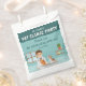 Celebrate your little animal lover’s special day with this boy veterinarian thank you favor bag designed by Destei. The design features a cute cartoon boy veterinarian standing behind a gray examination table with a puppy and a kitten. The illustration is placed at the bottom of the bag against a vibrant teal background.