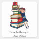 Boy With a Stack of Books Bookplate Square Sticker