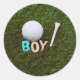 Boy with golf ball and tee on grass Sticker, This fun sticker is perfect for the expectant golfing dad! It features a baby boy with a golf club and ball, and makes a great gift for the new arrival.