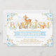 Boy Woodland Animals Blue Gold Floral Baptism Invitation