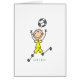 A stick figure boy in a yellow uniform plays soccer on soccer player T-shirts, mugs, tote bags, cards, stickers, and other soccer items that can be customised with a name or other text on the spot!