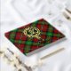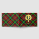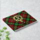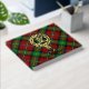 Clan Boyd crest badge surrounded by a strap and buckle over tartan background. Custom front, back and spine text.