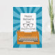 An orange vintage typewriter with a blue sunburst background. A piece of paper from the typewriter which has the words Happy Father's Day Boyfriend in typewriter font and a silhouette glasses. A lovely father's day card for your {spec}tacular Boyfriend! © Ness Nordberg