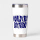 Tumbler with World's Best boyfriend in 3D dark blue text.