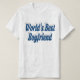 Shirt with World's best boyfriend in 3D sea blue text. Shirt available in several styles and colours with long or short sleeves.