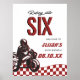 Riding into six! Celebrate your sons 6th birthday with our red, black and white speedster birthday welcome sign.