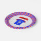 These birthday party plates will appeal to both boys and girls. No more complaints from party goers who don't want a pink princess plate! They feature a smart sports tee shirt with a large number 7 and space to add the birthday boy or girl's name (just type in the box). There is also a Happy Birthday banner on a starry background, and stripes in red and blue around the rim.