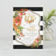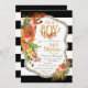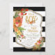 Deer Antler baby shower invitation with watercolor flowers and gold glitter and foil accent pieces on a black and white background.