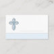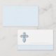 Baptism place cards with pretty blue cross on a blue dot background on the other with a line for your handwritten name when they arrive. Simply place the card at the table place setting.
