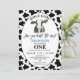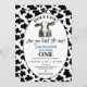 Boys Black White Cow Print Holy Cow 1st Birthday Invitation