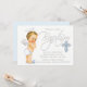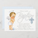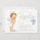 Boys blue and grey baptism invitations with adorable angel baby boy wearing a baby blue outfit and angel wings and halo, and beautiful blue diamond cross on a pretty white background. This cute baby blue angel baby boy baptism invitation is easily customised for your event by adding your event details, font style, font size & colour, and wording. You can move the cross as needed, as well as the baptism text, and you can delete the baptism word and add your own. You can also change the background colour. This is a printed design with no real jewels, bows, etc.