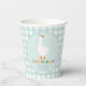 This cute boys 1st birthday paper cup design features one silly goose with a blue party hat, with matching blue gingham, and can be personalised with your child’s name in cute and colourful typography. The perfect farm design for your little one's first birthday!