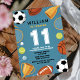Boys Blue Sports Theme Birthday Party Invitation