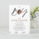 Foot themed boys baby shower invitation in a simple minimalist style featuring a football illustration and playoff drawings.