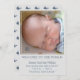 This classic design features a square photo with a thin, elegant white inner frame and the headline, "Welcome to the World". Add your baby's birth information and your own beautiful photo for a simple and sweet birth announcement! Backside includes an optional pattern of cute blue whales. (To remove, click customise and delete!)