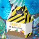 Pack goodies and treat in this colourful construction theme birthday party favour box! It is perfect for a construction theme birthday party because this box makes use of lots of construction theme elements like a cute red and yellow dump truck carrying the debris, an orange excavator, a green front loader pushing dirt, orange and white cones and the familiar construction stripes. Children guests are going to be so happy and excited to receive this favour box that looks like a construction tool box!
