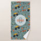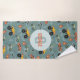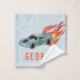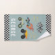 This cool personalised kids towel set design features a car pattern, with an orange and blue racing car with black wheels, a motorbike, and hot flames. There is also space for you to add your boys name and monogram in modern typography. The perfect racing car-themed gift for any toy car, truck, or motorbike enthusiast.