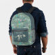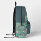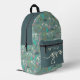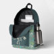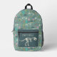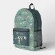 This cool personalised kids backpack design features a blue and green dinosaur fossil pattern, with Jurassic plants, Dino skeleton bones, and other archaeology illustrations, and a t-Rex. There is also space for you to add your boys name in whimsical typography. The perfect dinosaur themed gift for any history or dinosaur enthusiast.