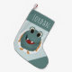 This cute and modern blue custom kids Christmas stocking design features a blue monster alien illustration. There is also space for you to add your boy's name in a simple and minimalist font. The perfect whimsical monster-themed gift for any magical creature enthusiast this holiday season!