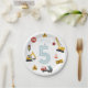 This cute and modern construction birthday paper plate features a blue building design with a digger, concrete truck, and road signs. Personalise with your child’s name, age, and party details — the perfect addition to any boys’ construction-themed birthday celebration.