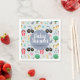 This cute and modern boys baby shower napkin design features farm animal cartoons, with a blue tractor, horse, pig, rabbit, chickens, and flowers, and can be personalised with the parent's names and the date of your party. The perfect rustic farm-themed gift for your co-ed couple's baby shower or kids first birthday.