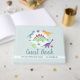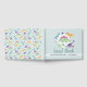 This cute and whimsical personalised boys baby shower guest book features dinosaur cartoons, with a t-rex, stegosaurus and jurassic jungle plants, and can be personalised with the parent's names and the date of your party. The perfect blue dinosaur themed keepsake from your co-ed couples baby shower.