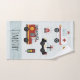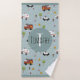 This cute and modern blue custom kids towel set design features emergency transport illustrations and a pattern, with a fire engine truck, fire, police car, and ambulance. There is also space for you to add your boys name and monogram in a simple font. The perfect gift for any transport-lover!