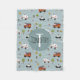 This cute blue custom kids fleece blanket design features an emergency vehicle transport pattern, with a red fire engine truck, police car, and ambulance. There is also space for you to add your boys name and monogram in a beautiful font, on a blue background. The perfect transport-themed addition to your kids room or nursery.