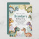 This adorable kids dinosaur birthday party invitation design has cute watercolor dinosaurs. These dinosaurs are green, blue, yellow, purple, and red. They are modern yet cute. There is space to add your child's name, info about the party, RSVP info, and more. Enjoy!