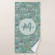 This cute personalised kids towel set design features a blue and green dinosaur fossil pattern, with Jurassic plants, Dino skeleton bones, and other archaeology illustrations. There is also space for you to add your boys name on every towel, and monogram on the bath towel, in whimsical typography. The perfect dinosaur themed gift for any history or dinosaur enthusiast, great for both toddlers and older children.