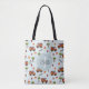 This cute blue custom kids tote bag design features a firefighter transport pattern, with a red fire engine truck, fire hydrant, cat in a tree, and fire. There is also space for you to add your boys name and monogram in a beautiful font, on a blue background. The perfect fireman transport-themed addition to your little one's school supplies.