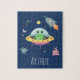 Boys Cute Modern Space Alien Cartoon & Name Kids Jigsaw Puzzle