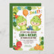 Boy's Dinosaur Birthday Invitation - This ground shaking joint birthday invitation has been a million years in the making. Featuring two happy, little boy dinosaurs, surrounded by prehistoric plants that were around when dinosaurs roamed the earth. Don't be a “nervous rex”. Let us help your little dinosaur's joint birthday extravaganza to be a “roaring” success. Totally "roar-some".