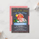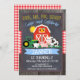 This boy's cute barnyard or farmyard birthday party invitation features a red barn, tractor, pig, lamb and a cow. The design consists of a chalkboard style frame and a plaid and wood image background. This is a cute way to invite your child's friends to his barnyard theme birthday party. Variations of this design are available at the store.