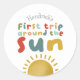 This cute and modern boys 1st birthday Favour sticker design features a sun illustration, with the text ‘first trip around the sun’ in colourful typography, and can be personalised with your boys name. The perfect bright design for your little one's first birthday!