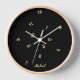 Custom, personalised, modern, unique, boho, contemporary, fun crazy whacky jumbled numbers / hours faux gold script / typography on black background acrylic round wall clock with high-impact plexiglass crystal face and natural wood frame, for your nursery, kitchen, living room, bathroom, kids corner, home, office. Its hours all appear to be jumbled, crazily placed, but amazingly it works. Simply type in your name / the name of bride & groom / husband & wife / family name, to customise. Makes a great custom gift for birthday, wedding, anniversary, holidays, christmas, new years, and more, for your loved ones, mum, dad, brother, sister, son, daughter, husband, wife, bride, groom, grandpa, grandma, family and friends.