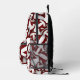 This cool volleyball backpack features a random pattern of varied size maroon & white volleyballs turned every which way on a white background - customise with the athlete's name & jersey number - by katz_d_zynes