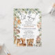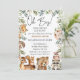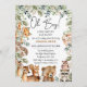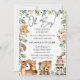 Sweet woodland themed boy's baby shower invitation featuring eight cute woodland animals, some foliage and a modern calligraphy heading image. This woodland themed baby shower invitation is ideal for a boy's woodland themed baby shower.