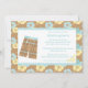 This 5x7 birthday party invite has a brown, blue and yellow hibiscus flower background. There is a boys bathing suit next to the customisable party information. Cocoa Studio